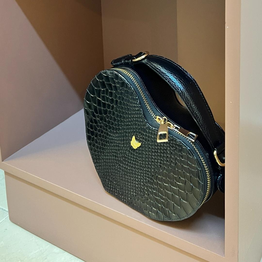 Un accesorio encantador y único, ideal para darle un toque especial a tu look. Este bolso en forma de corazón está confeccionado en cuero texturizado, lo que le da un acabado elegante y moderno. Su diseño versátil incluye un strap reata para llevarlo de estilo manos libres o una correa para llevarlo en la mano, aportando un toque sofisticado. Además, cuenta con un cierre de seguridad para proteger tus pertenencias.