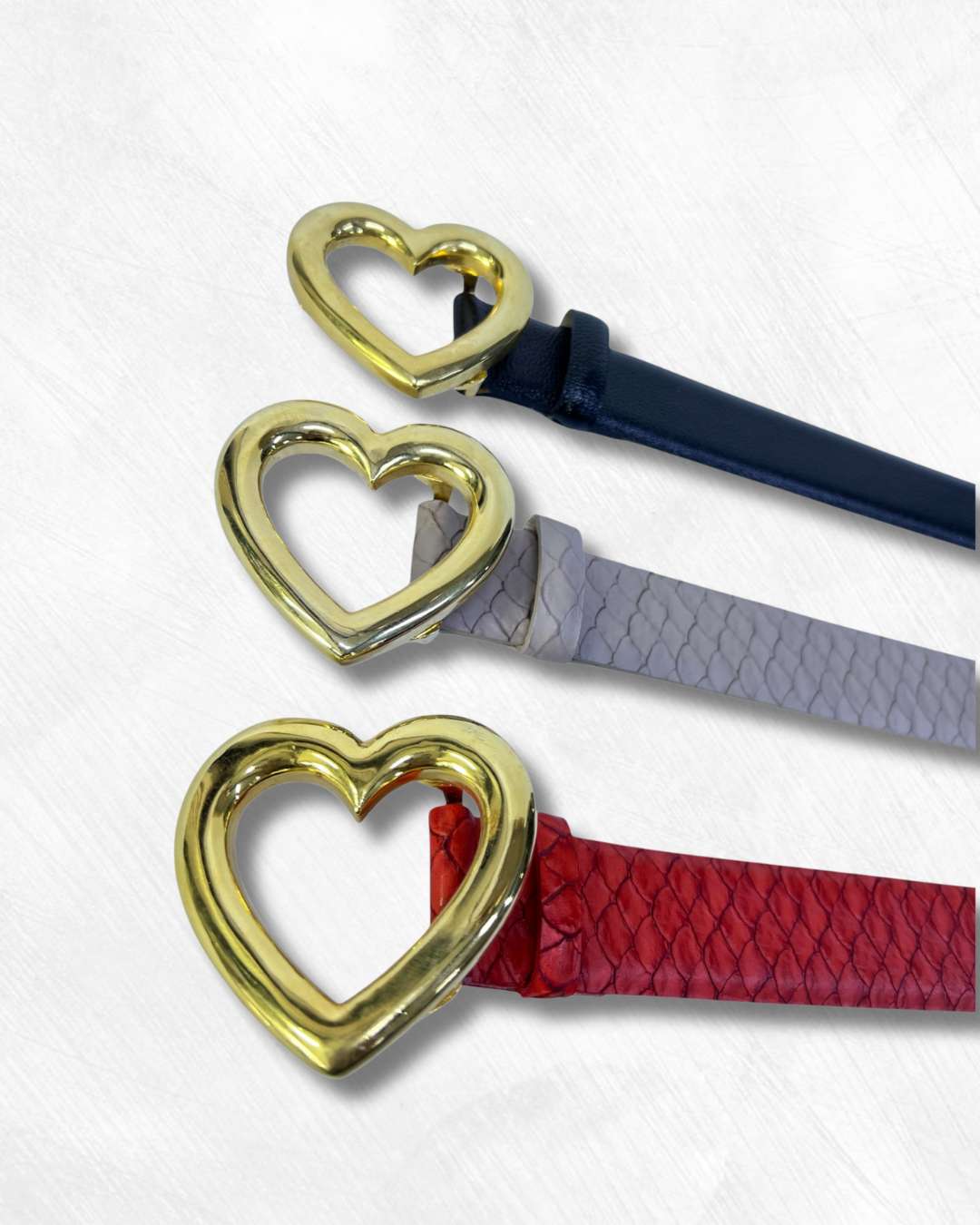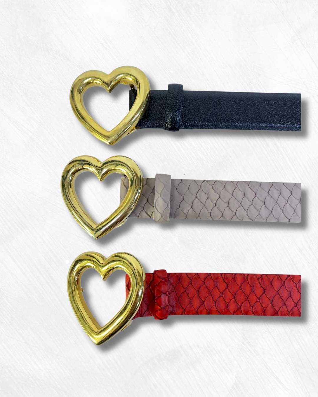 Correa de cuero para mujer con elegante hebilla en forma de corazón color taupe. Un accesorio femenino y moderno perfecto para complementar jeans, pantalones o vestidos.