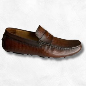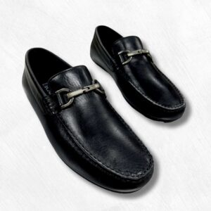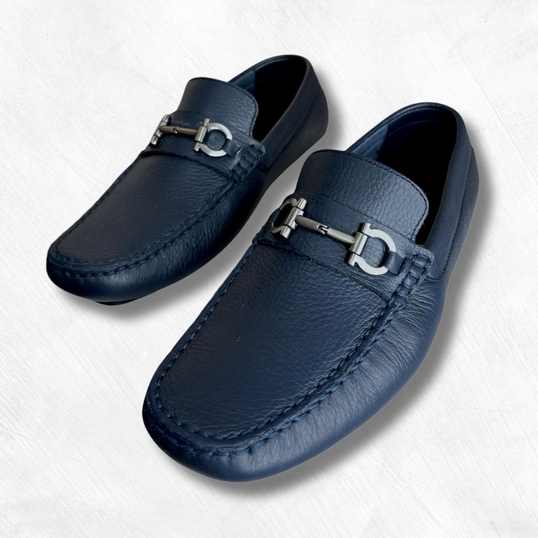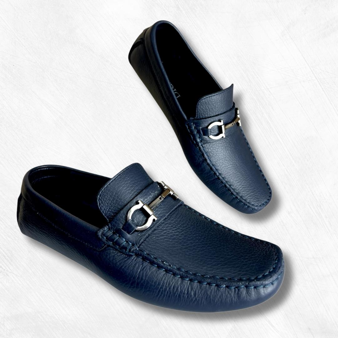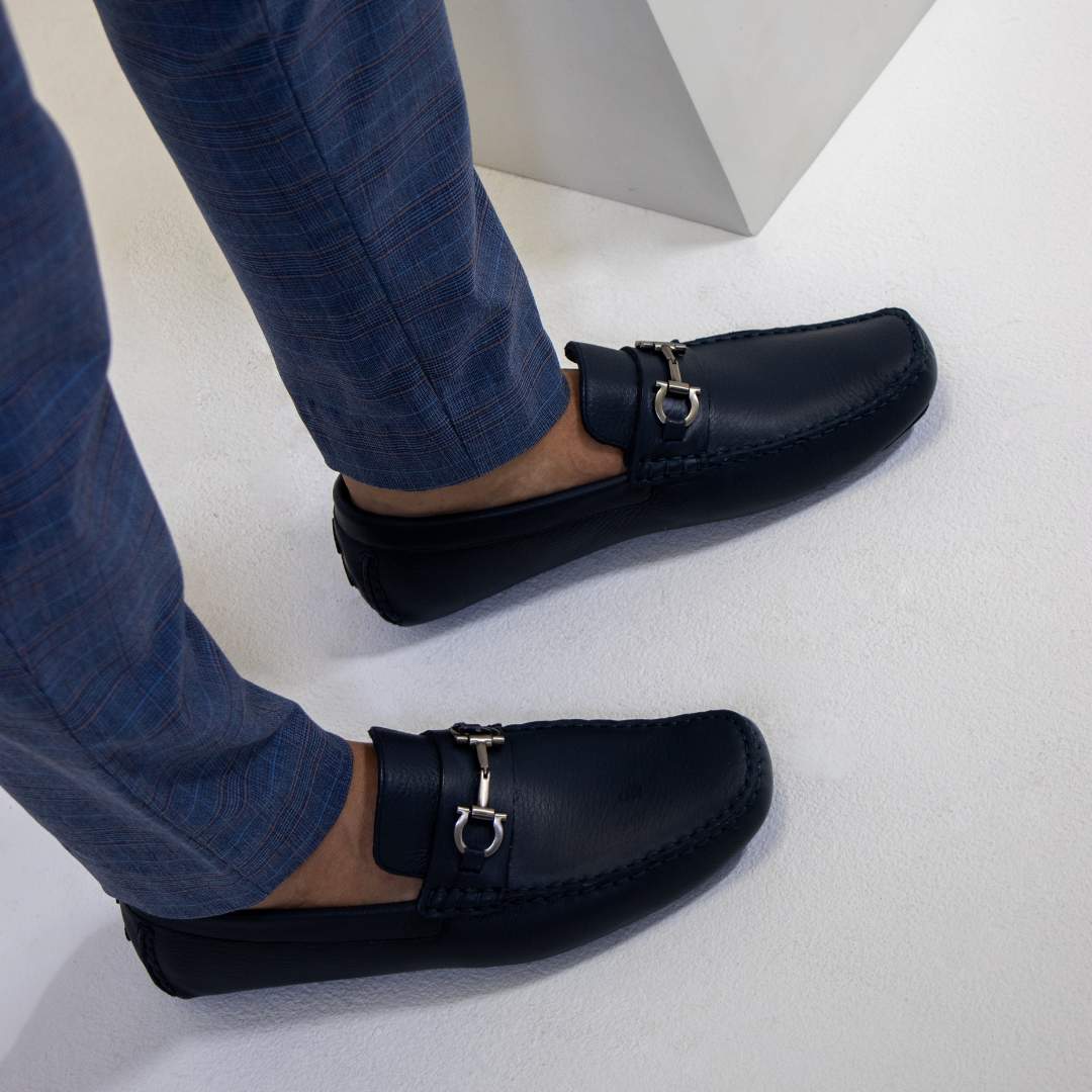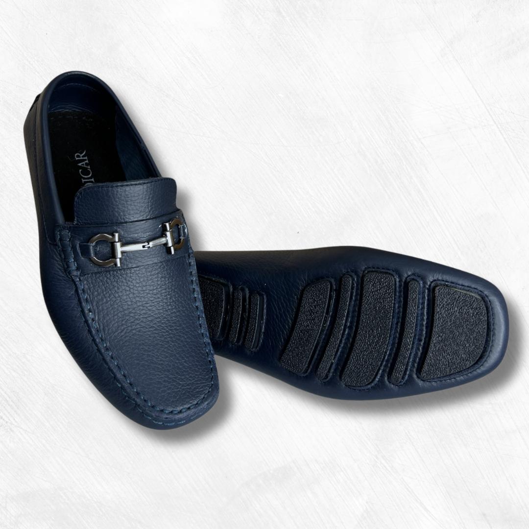 Los Mocasines 916 están confeccionados en cuero FLOUTER. Su diseño se distingue por su sobriedad, destacando las costuras en la estructura y el herraje metálico, lo que les confiere un aspecto moderno.
